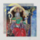 Pintura colorida, vibrante e contemporânea em cores dourada, azul, vermelha, verde, castanha. Um misterioso feiticeiro hipnótico com fantasias elegantes de veludo vermelho segurando uma esfera mágica sentada num trono gótico com gargantas e coruja. Ambiente é surreal, fantástico, alquímico onde você vê um testículo é bebendo de uma xícara, um monge templar voando sobre um sapo, bolhas transparentes, paisagens de fantasia com fogo infernal, céu azul cósmico com estrelas, montanhas do céu, árvores .Egg Tempera em um painel de madeira com folha de ouro. 1989, Miniatura Feita com técnicas pictoriais de 1300 por Alessandro Lumini (c) É também uma bela design de fantasia para Natal, Férias, Aniversário, Dia da Véspera de Ano Novo, Mardi Gras e Saudações de Carnaval.