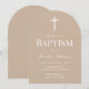 This neutral beige arch baptism invitation is perfect for an elegant celebration. Featuring a neutral palette and clean minimalist design, it suits both boys and girls beautifully. Easily customize all details for your event. The simple arch layout and white cross create a refined look that complements any baptism, christening, or dedication ceremony.