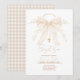 Featuring a soft cream watercolor bow with delicate pearls and florals, paired with a simple gold cross and elegant handwritten lettering.