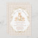 Celebrate the arrival of two precious little ones with this charming neutral gingham twins baby shower invitation.
