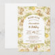 A soft and charming safari-themed design featuring gentle watercolor animals surrounded by delicate wildflowers and botanical greenery. Sweet lions, giraffes, elephants, and zebras create a whimsical storybook scene in warm neutral tones of beige, cream, and soft sage. The elegant arch layout and botanical details give this design a timeless and refined look, perfect for celebrating a little one’s special first birthday.