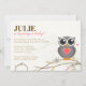 Convites neutros do chá de fraldas da coruja do género. Um grande convite do chá de fraldas que caracteriza uma coruja cinzenta com um coração vermelho e cor-de-rosa no centro. a coruja senta-se sobre os ramos extravagantes do flourish que guardaram flores e folhas. Os ahs deste convite do chá de fraldas da coruja um creme coloriram o fundo com elementos subtis do flourish nele. Obrigado de harmonização você carda e as etiquetas disponíveis