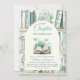 Convite New Chapter Blue Boy Library Book Baby Shower