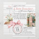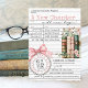 Convite New Chapter Library Card Book Bow Baby Girl Shower