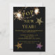 POP ! New Years party invitation with sparklers, gold stars, gold text and reverse has white poinsettias.
