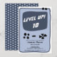 Uma festa divertida e divertida de aniversários de criança, perfeita para videogame e jogador de console com uma caixa fofa de um jogo de vídeo em cores azuis editáveis e padrões quadrados de pixels no verso.