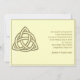 O convite do nó celta apresenta um design de nó celta que enfeita o lado esquerdo de cada cartão. As complexidades desse design são comuns entre muitas construções Celtas. Este design oferece um complemento eterno para o seu casamento com temas celta ou evento especial.