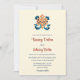 Este convite de casamento tibetano moderno apresenta um nó sem fim ouro com fitas azuis em fundo creme.