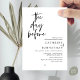 Anuncie sua alegria para sempre em estilo com o nosso moderno design do ensaio de casamento. É ideal para casais que decidiram celebrar a noite antes do seu grande dia. Com seu design sofisticado, mas lúdico, este convite certamente define o tom de um evento inesquecível. A carta de convite apresenta o moderno design de roteiro romântico, adicionando um toque de elegância do eterno à sua celebração. Projetado por TeeshaDerrick