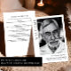 Modelo do programa de funeral editável para uma celebração da vida com uma grande foto de cobrir frontal embaixo de um título ousado "In Loving Memory", com espaço para o nome e as datas de alguém amado. Este programa de funerários imprimível inclui uma ordem de serviço claramente organizada no verso. Ideal para serviços de memória, esta simples e elegante modelo de programas funerários impressos ou descarregáveis é fácil de personalizar e proporciona uma estrutura significativa para honrar a vida de alguém querido. Perfeito para aqueles que buscam um programa de funeral editável com um esquema de serviço limpo e um forte tributo visual. Disponível como placas impressas ou um download digital instantâneo.
