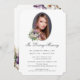 Serviço Elegante de fotografia floral roxa e branca/celebração da vida/funeral/em carinhoso convite de memória com uma foto adornada com orquídeas roxas e brancas.