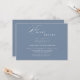 Uma noite moderna, limpa e elegante antes de ensaiar o anúncio do Janto adornada com um wisp giro da caligrafia contra um azul empoeirado cria o anúncio perfeito para a família e amigos. Personalize facilmente a frente e as costas com seus detalhes pessoais para torná-la sua.