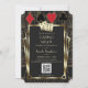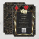 Design de cartão real e vintage, ótimo tema de cassino. Apresenta uma forma elegante no estilo Art Deco da antiga Hollywood dos anos 1920, com flor-de-lis dourada real, divisor dourado e fontes vintage, um par de dados, em um fundo texturizado preto com um padrão Art Deco, além de naipes de cartas com bordas douradas. Use a ferramenta de personalização para adicionar suas informações. Para mais, visite minha Coleção de Cassinos.