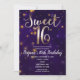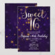 Convite Noite de Ouro e Roxo Sob as Estrelas Festa de 16 A