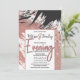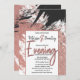 Este design apresenta um elegante, chic e moderno falso glitter impresso rosa-ouro, folha de ouro rosa, pincéis gigantes pretos e texto de script de pincel sobre fundo branco, convites para recepção de casamento noturna. Este design clássico e sofisticado é perfeito para o casal de competição de tendências e na moda. Personalize com sua própria mensagem na frente, assim como um monograma personalizado inicial no verso. Todas as impressão de fotos.
