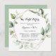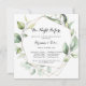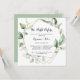 Esta noite geométrica elegante antes do convite de janto de ensaio é perfeita para um evento simples. O design apresenta folhas de eucalipto verde botânico pintadas manualmente, enfeitando uma armação geométrica dourada.