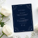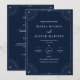 Crie uma celebração mágica e elegante com este design de casamento azul naval celestial. Com detalhes delicados de estrelas, detalhes da lua e um layout minimalista moderno, este design é perfeito para casais que amam temas românticos do céu noturno.
