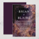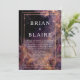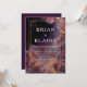 Convide seus convidados para uma celebração celestial mágica com este convite de casamento noturno estelar místico cativante. O design é um cenário de fundo impressionante que combina o mistério de um céu cósmico com o encanto de uma floresta escondida. A área de texto central é colocada contra uma vasta extensão dramática de poeira estelar cintilante, onde nuvens de nébula em rico roxo ameixa, índigo profundo e dourado-rosado se misturam e se fundem, criando um brilho etéreo. Uma moldura retangular fina e elegante em falso dourado fornece um limite luxuoso e nítido para o seu texto, sugerindo uma elegância refinada. A moldura é cercada por folhagens sombrias e silhuetadas da floresta e formas orgânicas abstratas douradas e roxas que criam uma borda fantástica e extraterrestre. Sugestões sutis de brilho cintilante aumentam a atmosfera mágica. O estilo geral é fantástico, sonhador e luxuoso, perfeito para casais que planejam um casamento noturno encantador, uma celebração do solstício de inverno ou qualquer evento que enfatize a beleza cósmica e tons de joias profundas e saturadas. Este design é perfeito para convites de casamento celestiais, anúncios de eventos de gala de luxo, convites para festas de noivado sob as estrelas, ou