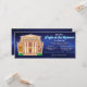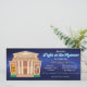 Noite no museu em formato de bilhete. Ótimo para um benefício, evento ou celebração de aniversário. Apresenta um museu antigo sob o céu noturno.