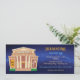 Noite no museu em formato de bilhete. Ótimo para um benefício, evento ou celebração de aniversário. Apresenta um antigo museu sob o céu noturno.