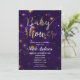 Convite Noite Roxa e Dourada Sob as Estrelas Baby Shower
