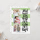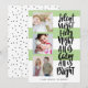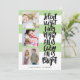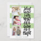 Cartão de feriado multigráfico moderno e engraçado, com três imagens quadradas e uma tipografia casual escovada dizendo "Noite silenciosa, tudo está calmo é brilhante" em preto sobre um padrão listrado. Adicione suas fotos e texto favoritos usando o modelo. A cor verde é totalmente personalizável para ajustado do seu esquema de cores de fotos.