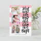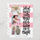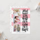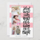 Cartão de feriado multigráfico moderno e engraçado, com três imagens quadradas e uma tipografia casual escovada dizendo "Noite silenciosa, tudo está calmo é brilhante" em preto sobre um padrão listrado. Adicione suas fotos e texto favoritos usando o modelo. A cor rosa é totalmente personalizável para ajustado do seu esquema de cores de fotos.