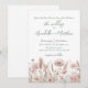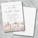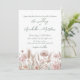 Convite de Casamento Elegante Boho Rosa Bege. Traga um toque de romance e natureza para o seu casamento com este convite lindamente desenhado. O fundo suave rosa bege define um tom elegante, complementado por uma tipografia simples de letra manuscrita branca e verde sálvia para um visual moderno e atemporal. Na parte inferior, uma delicada borda de flores silvestres apresenta grama de pampas, flores rosa poeirentas e folhagem exuberante, adicionando um toque caprichoso e boêmio.