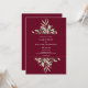 Com delicadas folhas de verde botânico em aquarela sobre um fundo burgundy. Este convite de casamento botânico elegante pode ser personalizado com as informações do seu dia especial. Criado por Thisisnotme©
