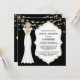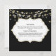 Luzes de cordas brilhantes parecem brilhar e brilhar contra um fundo preto no qual aparece uma mulher caucasiana loira que veste um vestido branco que tem um grande losango falho no centro das costas. Ao lado dela está uma moldura em forma de escala revestida com ouro que tem modelos para sua redação personalizada. O sentimento geral é elegante e chique. Este é o ideal para o Verão. primavera; chás de panela de inverno e outono ou eventos especiais de comemoração de aniversário. Sinta-se livre para excluir ou mover os modelos e alterar o tamanho e o estilo das fontes, se preferir.