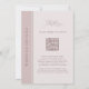 Convite de Casamento com Código QR de Tipografia Moderna e Negrito com Monograma em Rose Gold e Blush... Nosso convite de casamento "Tudo em Um" com código QR RSVP em rose gold e blush apresenta tipografia serifada negrito combinada com texto sem serifa para um convite de casamento monogramado simples e moderno. O monograma em rose gold e as ilustrações folhosas são botânicas artísticas desenhadas à mão... dando um visual único e elegante para noivas modernas. A parte de trás do convite contém um código QR que pode ser escaneado pelo destinatário, bem como a URL impressa do site do seu casamento, permitindo que seus convidados respondam rápida e facilmente para que você possa planejar os detalhes da sua recepção com mais facilidade. Esse convite de casamento moderno e minimalista foi projetado para ser moderno, econômico e ecologicamente correto. Todo o texto de exemplo pode ser facilmente revisado com suas próprias informações no modelo de personalização.