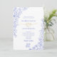 Traga romance atemporal para o seu dia de casamento com este elegante convite branco e azul inspirado em Chinoiserie. A delicada arte linear floral azul envolve a borda, complementada por esboços finos de borboletas e um símbolo único de corda dourada que representa a união e o amor eterno. O layout refinado e a tipografia serifada limpa adicionam um toque de sofisticação, perfeito para casamentos clássicos, de jardim ou estilo europeu. Personalize com os detalhes da cerimônia e crie um souvenir memorável que mistura tradição e charme. O design de fundo floral coordenado está incluído.