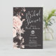 Convite Noiva com Flores Escuras e Bege Róseo em Cinza Car