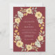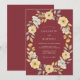 Uma encantadora grinalda floral em tons suaves de amarelo e branco cremoso desce em cascata sobre um fundo borgonha profundo, evocando uma estética romântica e pictórica. Este design captura um delicioso clima outonal ou rústico com suas delicadas flores e folhas. É perfeito para uma celebração graciosa e inspirada na natureza.