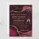 Um design ousado e luxuoso com texturas de ágata rubi profunda acentuadas com brilho dourado cintilante para um acabamento glamouroso e moderno. A elegante escrita fluida combina com tipografia serif refinada para criar uma estética sofisticada e de alta qualidade. Os tons vermelhos ricos evocam paixão e opulência, enquanto os acentos dourados metálicos adicionam calor e brilho. Perfeito para casamentos com temas de pedras preciosas ou geodos, este convite chique traz um visual editorial polido para sua papelaria - ideal para celebrações românticas e recepções elegantes à noite.