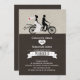 Bonita Convite de casamento de Bicicleta Tandem e noiva... convites de casamento em tons castanhos com noiva em um vestido de noiva com um pequeno coração vermelho no véu e um noivo em seu terno - modernos anúncios de casamento ... anúncios de casamento totalmente personalizáveis de Ricaso