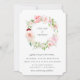 Linda grinalda de aquarela de folhagem de jardim e delicadas flores rosa, convite de casamento. O verso do cartão apresenta cor cinza prateado sólido.