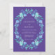 Um rico fundo roxo é adornado com uma delicada grinalda em cascata de flores e folhagens em tons de água-marinha e azul suave em aquarela. Este design evoca um sentido de beleza botânica encantadora.