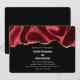Convite de casamento com um design de cetim falso. Vermelho escuro com dobras e uma borda de brilho dourado.