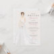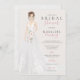 O Chá de panela tem uma linda noiva de vestido de castigo. Várias opções disponíveis para a cor do cabelo e o tom da pele da noiva representam a noiva mais. Lace simulado no fundo do convite.