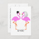 Um cartão RSVP de convite para casamento fabuloso se você estiver procurando algo um pouco menos tradicional; este gráfico moderno tem dois flamingos rosas bonitos no papel de noiva e noiva. Um design tão divertido, cor-de-rosa, laranja e branco, com texto totalmente editável, para que você possa digitar todos os seus detalhes pessoais sem custo extra.