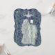 Casal de noiva e noivo esqueleto assustador e encantador que brilha. Características de design estilo vintage com lustre e fundo ornamentado. O casal está de mãos dadas. Este convite de Halloween é adequado para bailes de fantasia, coquetéis, festa de Halloween e casamento de Halloween. Apresenta azul turquesa, branco, preto e roxo.