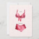 O chá de panela de Lingerie mostra a noiva que está de cueca e que está querendo ser mimada. A parte de trás do convite tem um plano de fundo e lingerie com o tamanho da noiva.