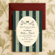 Defina o tom para uma celebração alegre e inesquecível com este convite de casamento divertido e elegante. Com listras vermelhas e rosa claro e sotaques de estrelas douradas, este design inspirado no retro traz um clima divertido de circo e romance para o seu grande dia. Perfeito para casais que desejam que a papelaria do casamento seja única e memorável, é ideal para celebrações com tema vintage, casamentos estilo carnaval ou simplesmente uma história de amor ousada e criativa.