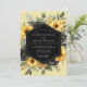 Experimente um toque dramático e artístico com este deslumbrante design botânico. Anêmonas e papoulas amarelas vibrantes explodem contra flores de cor carvão profundo e folhagem verde-sage suave. Toda a composição é definida contra um fundo amarelo manteiga pálido, criando um belo estudo de luz e sombra para o seu dia especial.