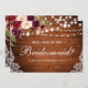Cartão de Noiva Floral de Renda Luzes de Corda de Madeira Rústica Casamento Burgundy Marsala Aquarela Você Quer Ser Minha Dama de Honra