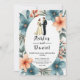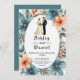 Este elegante convite de casamento floral de aquarela é perfeito para um casamento moderno. A design romântica apresenta uma elegante estrutura floral de aquarela com uma ilustração noiva e noiva e caligrafia preta sobre fundo branco.