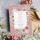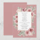 Um convite de casamento moderno e elegante com flores de rosa e tipografia sofisticada sobre um fundo rosa poeira. Criado por Thisisnotme©