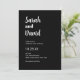 Celebre seus futuros núpcias com este convite de casamento simples, preto e branco, do Elegante. A design limpa e moderna apresenta os nomes do casal em uma bela fonte. É a maneira perfeita de dar um tom sofisticado, mas brincalhão para a sua celebração de casamento. Este versátil Convite Plano com Tamanho: design de 5" x 7" é fácil de personalizar com todos os detalhes do evento. O texto em negrito em um fundo branco nítido garante que todas as suas informações sejam fáceis de ler. Quer você esteja planejando um janto íntimo ou uma reunião maior, este convite é uma escolha eterno que irá agradar aos seus convidados. Noiva moderna, negras e brancos Convite para apresentação de papel quadrado Tipo Assinatura Matriz