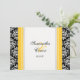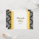 Elegante, sofisticado e sofisticado apartamento 5x7" resposta de convite de festa / cartões planos rsvp com um grande padrão damasco formal, bordeado por listras verticais "amarelo e branco" e um revestimento branco aparado com ouro. PERSONALIZE - Adequado para todas as ocasiões formais e especiais, altere a redação / tamanho / cor e estilo da fonte; a cor de fundo para qualquer uma de sua escolha e mova / adicione ou exclua modelos para torná-lo único. Use o botão "personalizar" para acessar todas as opções de edição. IDEAL PARA - Aniversário chique, jantar, inauguração, formatura e festas de formatura ou casamentos "branco e preto", noivados e aniversários. PEDIDOS PERSONALIZADOS - Para alterações de cor, produtos correspondentes ou assistência, entre em contato comigo em clientrequestrw@gmail.com